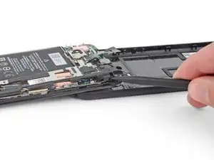 Используйте кончик медиатора, чтобы отсоединить антенный гибкий кабель от сборки динамика.