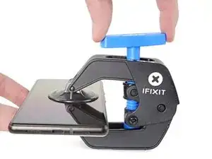 Нагрейте iOpener и проложите его между руками Anti-Clamp так, чтобы он лежал на правом крае телефона.