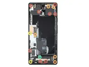 Используйте отвертку Torx T3, чтобы удалить 16 винтов, крепящих среднюю рамку к корпусу: