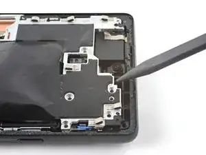 ИспользуйтеTweezers или ваши пальцы, чтобы отделить динамик от средней рамки.