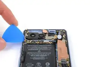 Проведите лопатками от блока камер вниз по длинным краям задней крышки, отслаивая клей, который мог приклеиться повторно.