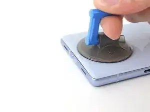 Приставьте присоску к левой стороне экрана, чтобы ручка была направлена вниз.