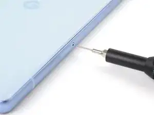 Нажмите инструментом в отверстие, чтобы извлечь лоток SIM-карты.
