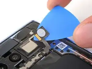 Вставьте конец открывателя между правым краем кабеля фронтальной камеры и рамкой.