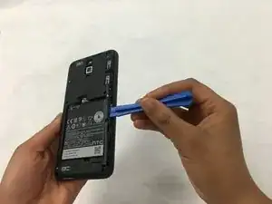 С помощью пластикового инструмента для открытия снимите заднюю крышку телефона.