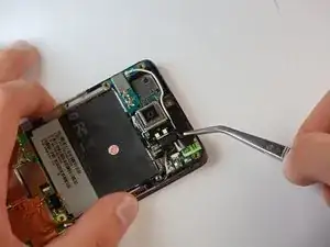 С помощью пинцета отключите мелкий разъем вибромотора от гнезда на материнской плате.