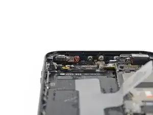 Выкрутите Phillips винт 1,6 мм, фиксирующий вибромотор в верхней внутренней части задней крышки.