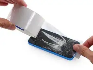Наложите полосы прозрачной упаковочной ленты внахлест поверх дисплея iPhone, пока вся передняя панель не будет покрыта.