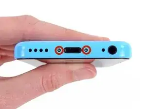 Снимите два винта P2 Pentalobe 3,8 мм по обе стороны от разъёма Lightning.