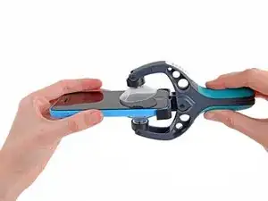 Крепко удерживая iPhone, закройте рукоятку iSclack, чтобы раздвинуть присоски и поднять переднюю панель от задней крышки.