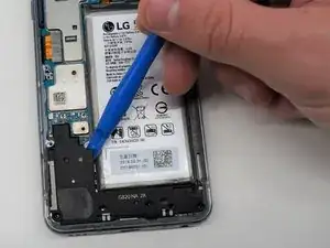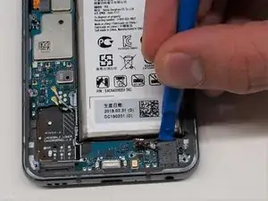Используя инструмент для вскрытия, аккуратно подденьте шлейф, чтобы отключить аккумулятор.