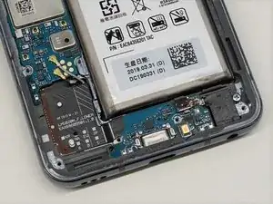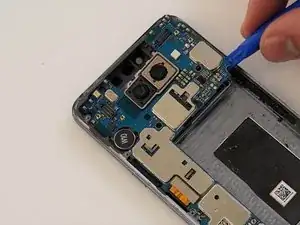 С помощью инструмента для вскрытия осторожно подденьте материнскую плату от рамы и извлеките её из телефона.