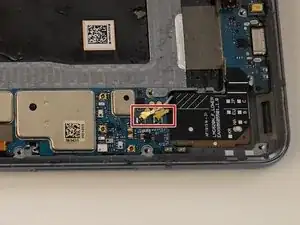 С помощью инструмента для вскрытия аккуратно отсоедините шлейф экрана от материнской платы.