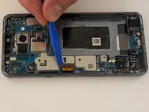 Когда образуется достаточный зазор, используйте инструмент для вскрытия, чтобы полностью отделить заднюю панель от телефона.