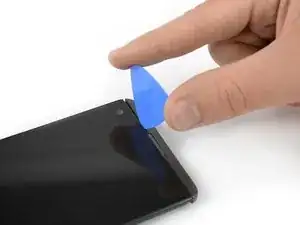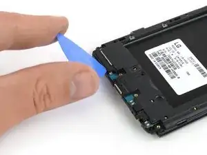 Используйте плоский конец лопатки, чтобы отсоединить шлейф фронтальной камеры.