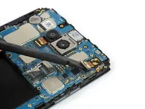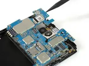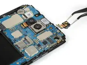 Фронтальную камеру можно оставить на месте, если вы аккуратно извлекаете сборку материнской платы. Однако если вы сомневаетесь, аккуратно удалите её пинцетом.