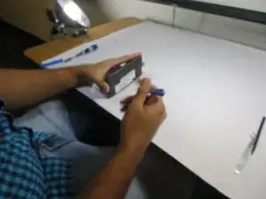 Разместите Droid Maxx лицевой стороной вверх на мягкой плоской пластиковой поверхности с достаточным пространством для размещения инструментов и мелких деталей.