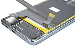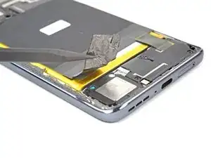 Если задняя крышка всё ещё приклеена к средней раме, проведите лопаткой по краям телефона, пока крышка полностью не отделится.