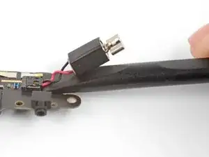 Используйте острый конец лопатки, чтобы поддеть и отсоединить антенный кабель от его гнезда на дочерней плате.