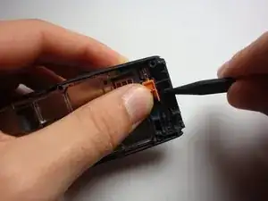 Передняя панель удерживается тремя пластиковыми креплениями, поэтому подденьте равномерно с обеих сторон телефона.