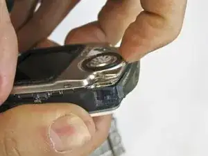 Сдвиньте резиновую кнопку питания от корпуса телефона.