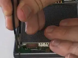 С помощью пинцета приподнимите правую сторону крепления гибкого кабеля.