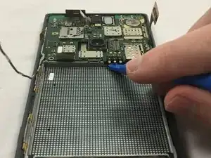 Используйте заострённый конец лопатки, чтобы уверенно приподнять разговорный динамик из гнезда.