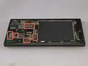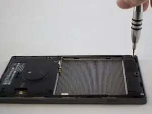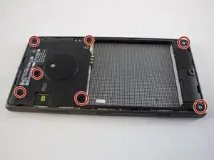 Удалите два серебристых винта 3.9 мм из нижнего угла телефона. Затем удалите пять чёрных винтов 2.5 мм сверху вниз телефона.