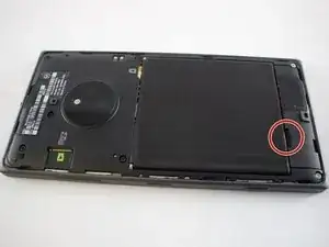 Снимите чёрные полоски по обеим сторонам от отсека для аккумулятора.