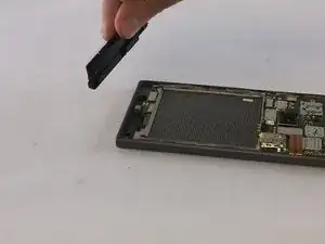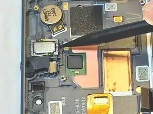 Используйте пластиковый инструмент, чтобы поддеть вибромотор у основания телефона.