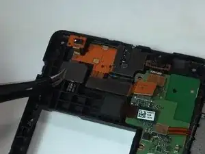Используйте пластиковый инструмент для вскрытия, чтобы приподнять аккумулятор. Затем извлеките его.