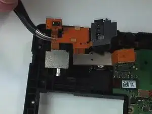 Пинцетом аккуратно подденьте разъём для наушников и приподнимите его.
