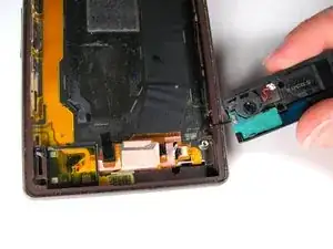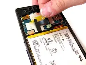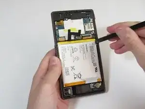 Просто разместите безопасный инструмент для поддевания рядом с указанной защёлкой и слегка нажмите на неё. Плата антенны должна отщёлкнуться.