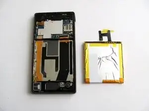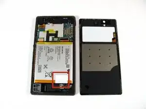 Теперь, когда задняя панель снята, видна батарея. У Вас есть доступ к батарее и её соединительным компонентам.