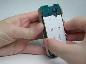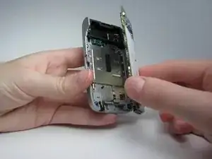Вставьте инструмент для вскрытия iPod между основанием телефона и аккумулятором.