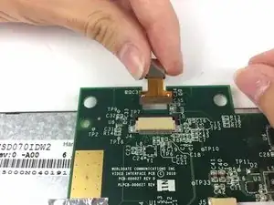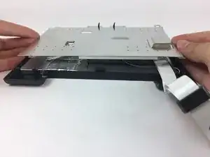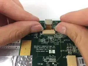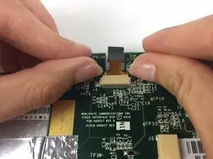 Отключите два ленточных кабеля от их бесконтактных разъёмов, отогнув вверх чёрную пластиковую защёлку.