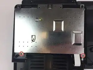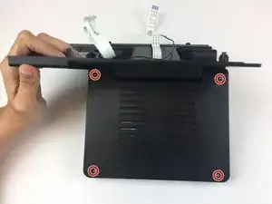 Отверткой Phillips #0 отвинтите четыре винта с крестовой шлицей (6 мм), отмеченные красными кругами.