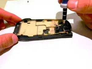 Снимите винт 2 мм с верхней части внутренней задней панели телефона.