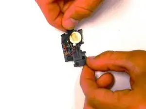 Используйте пинцет, чтобы извлечь внешнюю часть динамика из малого блока.
