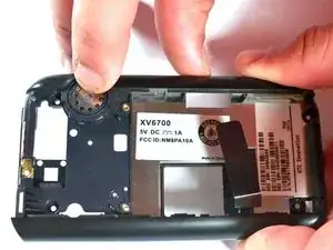 Нажмите пальцем на динамик с внешней стороны корпуса — динамик выйдет наружу.