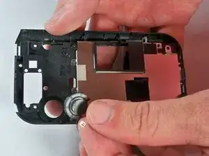 Удалите два винта Phillips #000 длиной 4,0 мм в верхней части отсека для батареи. Пинцет может пригодиться для удаления винтов.