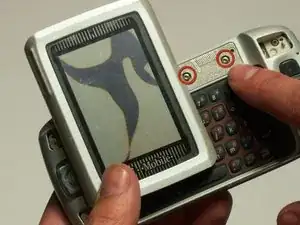 Будьте осторожны при обращении с телефоном после снятия винтов, так как две основные части телефона больше не соединены.