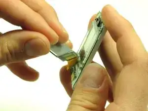 С помощью инструмента для вскрытия iPod аккуратно приподнимите экран от его подложки.