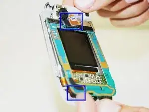 Удалите два других соединения гибкого провода в верхней и нижней части логической платы ЖК-дисплея. Поверните вверх по соответствующим соединениям, как показано.