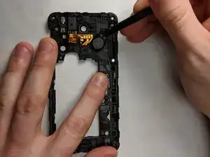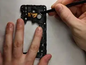 Теперь снимите заднюю рамку, обнажив динамик. Для удаления рамки Вы можете использовать лопатку из набора инструментов iFixit или свои руки.
