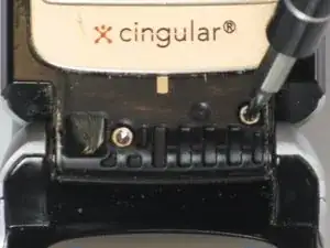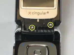 Используйте отвёртку T6, чтобы выкрутить два видимых винта, расположенных непосредственно под экраном.