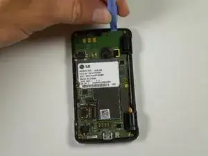 Аккуратно поднимите эти две части, обходя периметр телефона, чтобы отделить логическую плату от телефона.