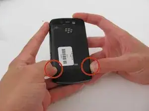 Одновременно нажмите на оба переключателя большим пальцем или пальцами и отсоедините заднюю крышку от корпуса устройства.