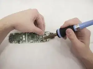 Используйте паяльник, чтобы разогреть припой на контактных точках, чтобы вы могли легко удалить неисправный динамик.