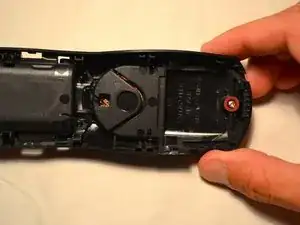 Снимите два винта 11 мм внутри отсека для батареи, используя крестовую отвертку Phillips #1 (расположены близко к самому низу телефона)